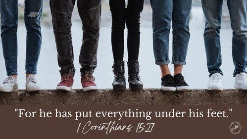 This verse is taken out of Psalm 8:6, proving that all enemies and death itself shall be put under the feet of Christ. And because we have Jesus Christ living in us, and the same power in us that raised Jesus from the dead, and the dominion and authority that was given to us by God - everything is under our feet as well. It's time to put the devil where he belongs!