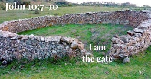 This image is of a sheep pen where shepherds would keep their flocks. The shepherds would drive their sheep all day and then, at nightfall, keep them inside. But since there was no gate, the Shepherd would lay across the opening, keeping the sheep in and protecting them from the wild animals.