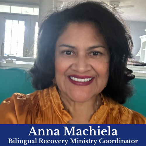 Anna Machiela es la Coordinadora del Ministerio de Recuperación Bilingüe en For His Glory Ministry. Con un profundo deseo de servir al Señor, acompaña a la comunidad hispana con apoyo, ánimo y esperanza en Cristo. Con 28 años de experiencia en la educación y una maestría en educación, Anna combina un corazón compasivo con una fuerte vocación de caminar junto a individuos y familias en su proceso de sanidad y restauración.